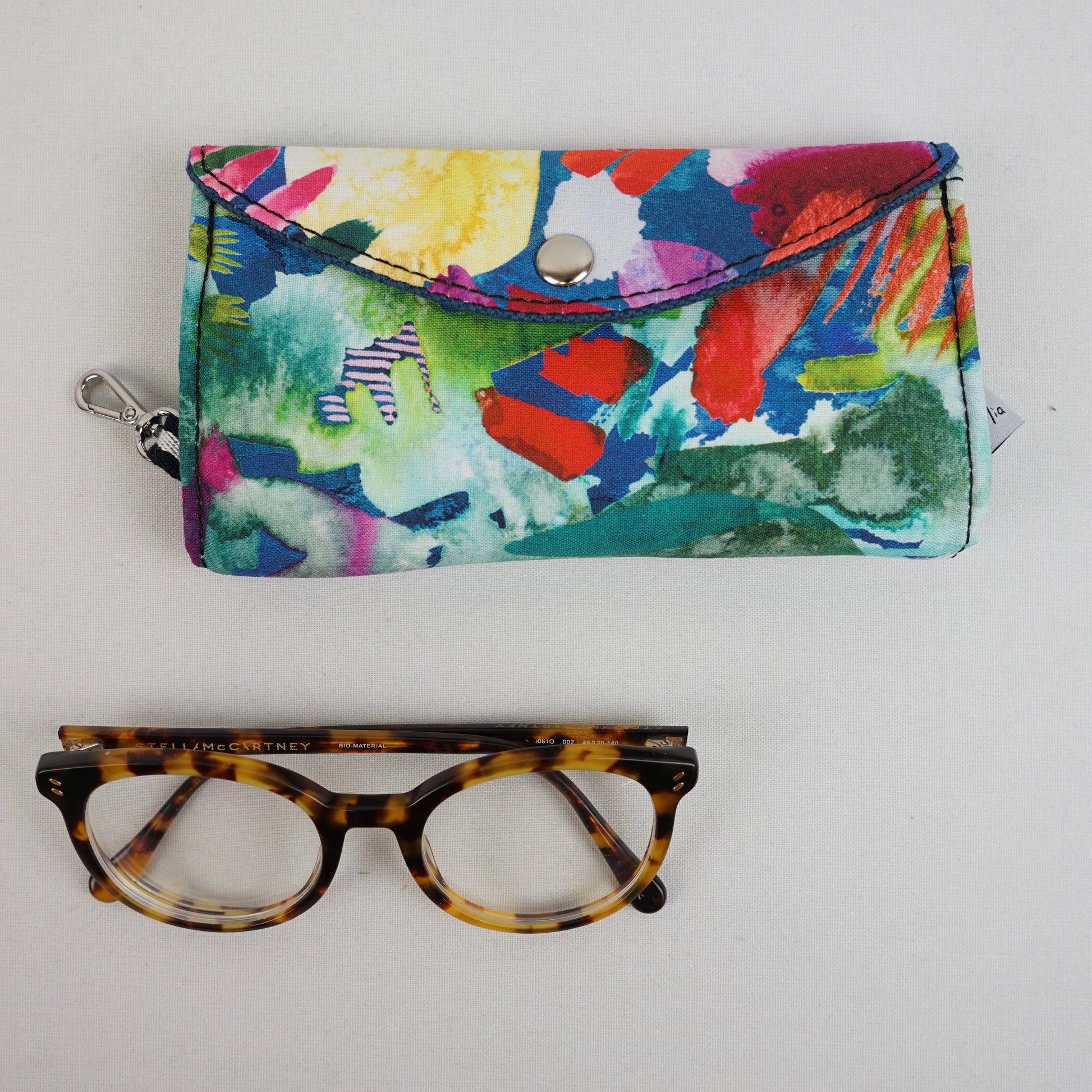 E’ il mio secondo occhiolino, questo con tessuto giapponese, e la fantasia dei cani schnautzer ! E’ un mai più senza! Capientissimo! Io ho tanti occhiali e mi consente di trovarli subito , volendo posso affrancarli alla tracolla ! Geniali soluzioni di Di mano mia!!!